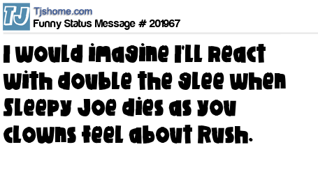 X is I would imagine I'll react with double the glee when Sleepy Joe dies as you clowns feel about Rush.