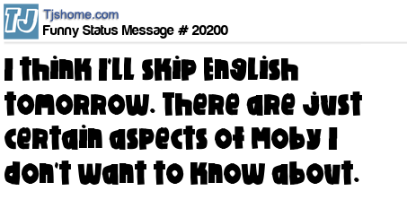 X I think I'll skip English tomorrow. There are just certain aspects of Moby I don't want to know about.
