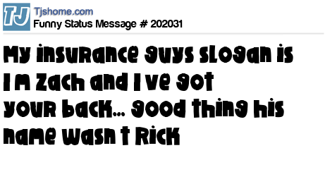 X says My insurance guys slogan is I’m Zach and I’ve got your back… good thing his name wasn’t Rick
