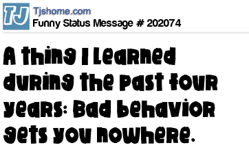 X is A thing I learned during the past four years: Bad behavior gets you nowhere.