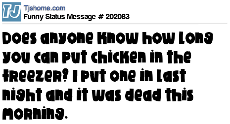 - # 124910 Does anyone know how long you can put chicken in the freezer? I put one in last night and it was dead this morning.