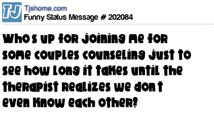 X says Who’s up for joining me for some couples counseling just to see how long it takes until the therapist realizes we don’t even know each other?