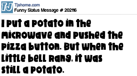 X says I put a potato in the microwave and pushed the pizza button. But when the little bell rang, it was still a potato.