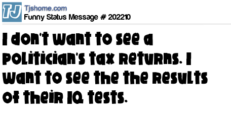 - # 174613 Everyone want to see a politician's tax returns. I'd rather see their IQ tests.