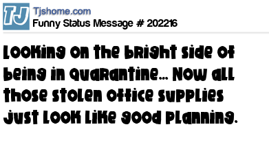 X says Looking on the bright side of being in quarantine… Now all those stolen office supplies just look like good planning.