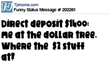 X says Direct deposit $1400: me at the dollar tree. Where the $2 stuff at?