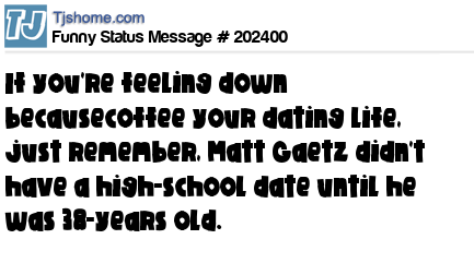 X is If you're feeling down becausecoffee your dating life, just remember, Matt Gaetz didn't have a high-school date until he was 38-years old.