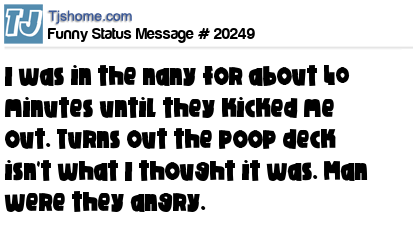 X is I was in the nany for about 40 minutes until they kicked me out. Turns out the poop deck isn't what I thought it was. Man were they angry.