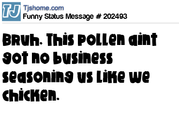X says Bruh. This pollen aint got no business seasoning us like we chicken.