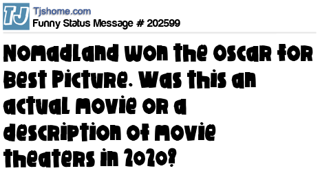 X says Nomadland won the Oscar for Best Picture. Was this an actual movie or a description of movie theaters in 2020?