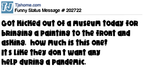 X says Got kicked out of a museum today for bringing a painting to the front and asking, “how much is this one?” It’s like they don’t want any help during a pandemic.
