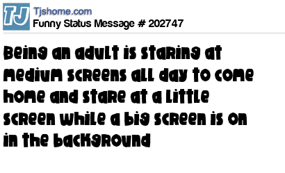 X says being an adult is staring at medium screens all day to come home and stare at a little screen while a big screen is on in the background