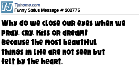 - # 32999 why do we close our eyes when we pray? when we cry? when we dream? when we kiss? cuz we know that most beautiful things in life are not seen, but felt by the heart.