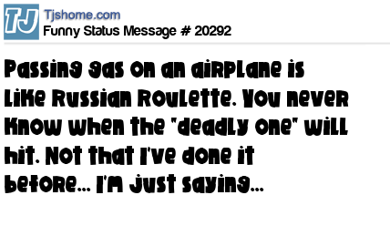 X passing gas on an airplane is like Russian Roulette. You never know when the "deadly one" will hit. Not that I've done it before... I'm just saying...