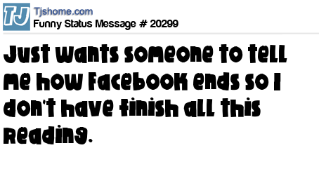 X is just wants someone to tell me how Facebook ends so I don't have finish all this reading.
