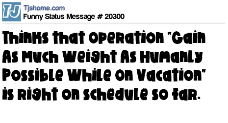 X is thinks that Operation "Gain As Much Weight As Humanly Possible While On Vacation" is right on schedule so far.