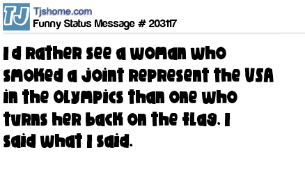 X says I’d rather see a woman who smoked a joint represent the USA in the Olympics than one who turns her back on the flag. I said what I said.
