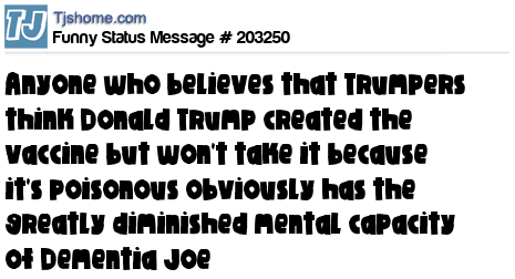 X is Anyone who believes that Trumpers think Donald Trump created the vaccine but won't take it because it's poisonous obviously has the greatly diminished mental capacity of Dementia Joe