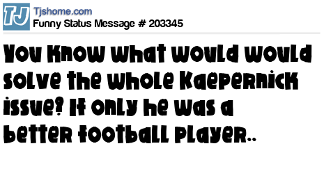 - # 179431 You know what would would solve the whole Kaepernick issue? If only he was a better football player...