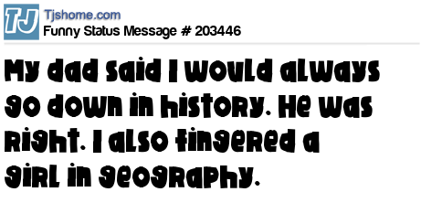 X My dad said I would always go down in history. He was right. I also fingered a girl in geography.