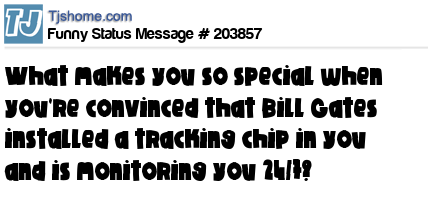 X is What makes you so special when you're convinced that Bill Gates installed a tracking chip in you and is monitoring you 24/7?