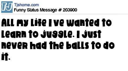 - # 207224 You know All my life I’ve wanted to learn to juggle. I just never had the balls to do it.