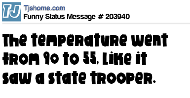 - # 189439 The weather temperature when from 90 to 55 like it saw a State Trooper.
