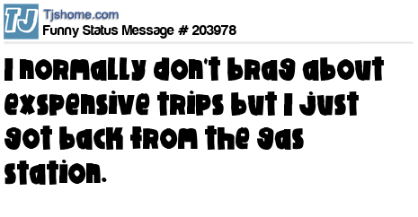 - # 205848 I don't like to brag about expensive trips I go on but that last trip to the gas station really cost me.