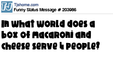 X says In what world does a box of macaroni and cheese serve 4 people?