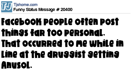 X is Facebook people often post things far too personal. That occurred to me while in line at the druggist getting Anusol.