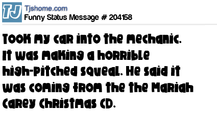 X says Took my car into the mechanic. It was making a horrible high-pitched squeal. He said it was coming from the the Mariah Carey Christmas CD.
