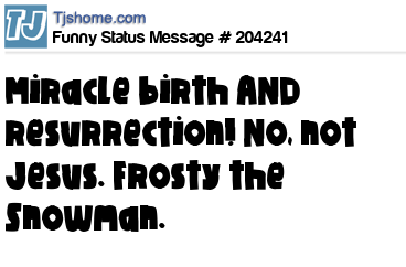 - # 142536 Miracle birth AND resurrection! Making Frosty the Snowman my personal savior.