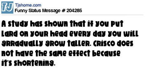 X says A study has shown that if you put lard on your head every day you will grradually grow taller. Crisco does not have the same effect because it's shortening.