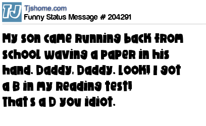 X says My son came running back from school waving a paper in his hand. Daddy, Daddy. Look! I got a B in my reading test! That’s a D you idiot.