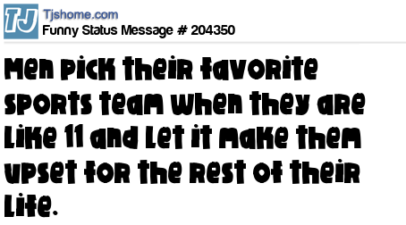 X says Men pick their favorite sports team when they are like 11 and let it make them upset for the rest of their life.