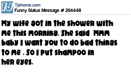 - # 207848 My wife got in the shower with me this morning. She said “Mmm baby I want you to do bad things to me. So I put shampoo in her eyes.