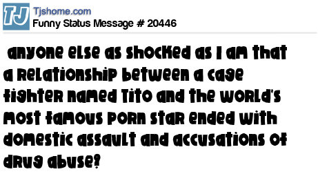 X anyone else as shocked as I am that a relationship between a cage fighter named Tito and the world's most famous porn star ended with domestic assault and accusations of drug abuse?