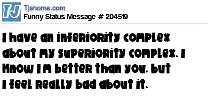 - # 135795 I have an inferiority complex about my superiority complex. I know I'm better than you, but I feel really bad about it.