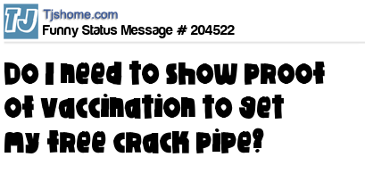 - # 204520 Where do I go to get my free crack pipe. . . Asking for a friend.
