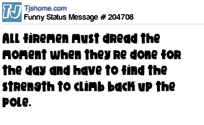X says All firemen must dread the moment when they’re done for the day and have to find the strength to climb back up the pole.