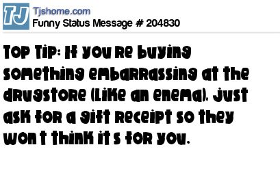 - # 202274 If you’re buying something embarrassing at the drugstore (like an enema), just ask for a gift receipt so they won’t think it’s for you.