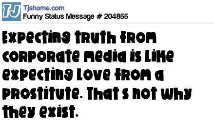 X says Expecting truth from corporate media is like expecting love from a prostitute. That’s not why they exist.