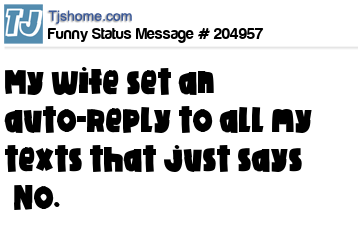 X says My wife set an auto-reply to all my texts that just says “No.”