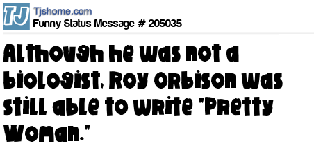 X says Although he was not a biologist, Roy Orbison was still able to write "Pretty Woman."