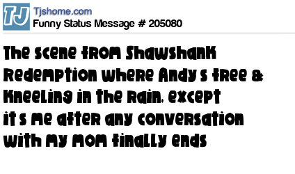 X says The scene from Shawshank Redemption where Andy’s free & kneeling in the rain, except it’s me after any conversation with my mom finally ends