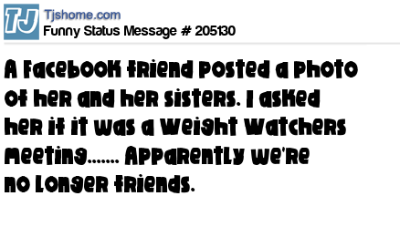 X says A Facebook friend posted a photo of her and her sisters. I asked her if it was a Weight Watchers meeting....... Apparently we're no longer friends.