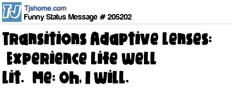 X says Transitions Adaptive Lenses: “Experience life well lit.” Me: Oh, I will.