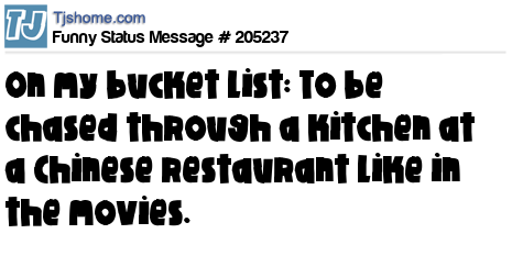 - # 185625 On my bucket list: To be chased through a kitchen at a Chinese restaurant like in the movies.
