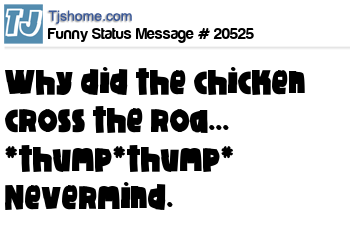 - # 157104 I just seen a chicken cross the road. I'm not even going to question it. It's not like the chicken is going to answer me back. . .