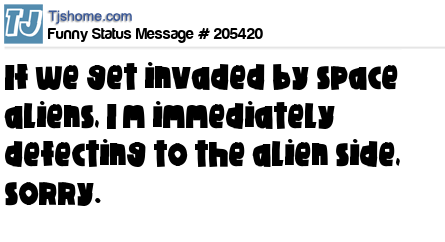 X says If we get invaded by space aliens, I’m immediately defecting to the alien side, sorry.